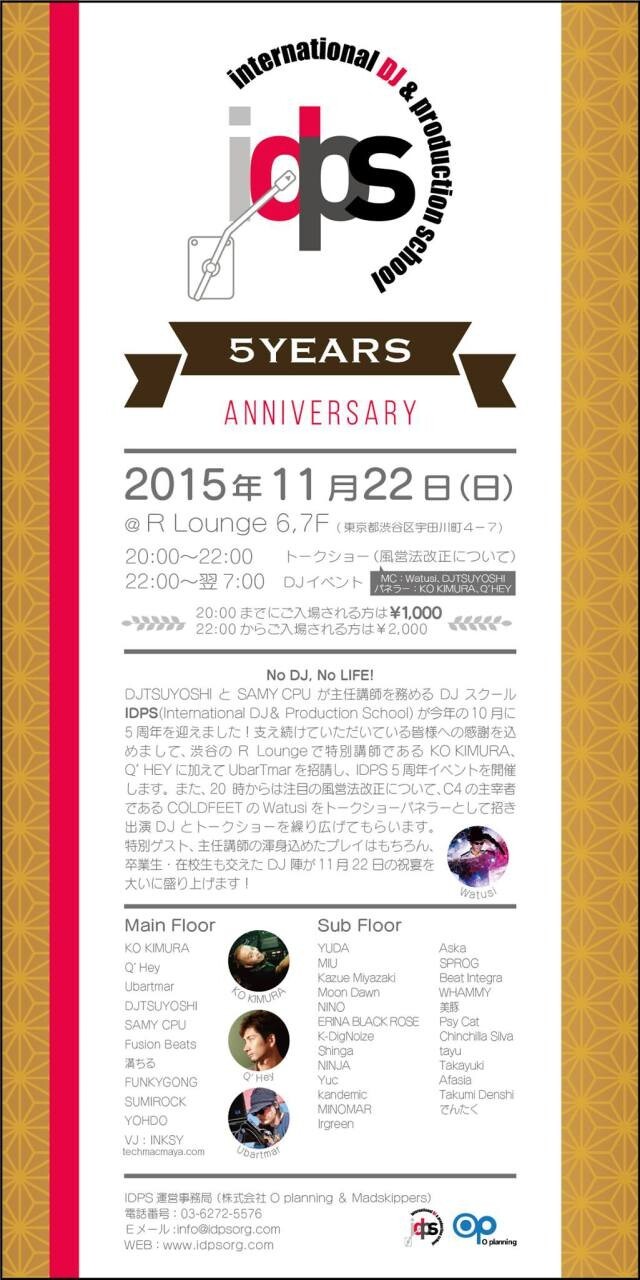DJTSUYOSHIとSAMY CPUが主任講師を務めるDJスクールIDPS(International DJ& Production School)が今年の10月に5周年を迎えました!