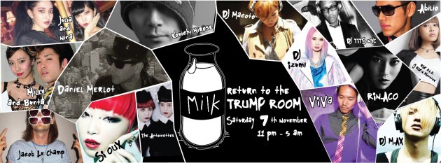 One of the original Trump Room parties is back after a 5 month break, creating a bunch of great Milk Parties at Trump Room earlier in the year, and events such MILK Presents ARC Opening party, Milk is back at the Trump. Know for past events such regular SNIFF SNIFF events and TOKYO SCHOOL NIGHTparties, hosting a variety of Events such as Magazine / CD lauches (Modular Records) fashion week parties and collaborations (FUCKING FRIDAYS, NYLON JAPAN, MAD DECENT ETC) this time sees the return of MILK, over 2 levels.
