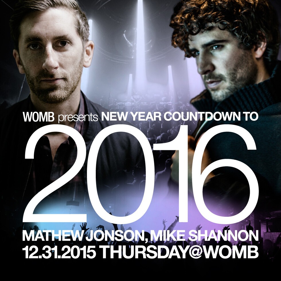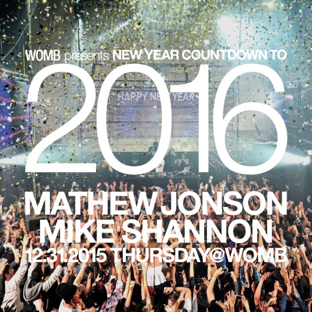WOMB PRESENTS NEW YEAR COUNTDOWN TO 2016 。今年のカウントダウンパーティーにゲストに迎えられるのはカナダ出身の偉大なアーティストの2人。2015年は RAINBOW DISCO CLUB (MODERN DEEP LEFT QUARTET 名義) と LABYRINTH という海外からも評価の高い人気2大フェスティバルに出演し日本でも絶大な人気を誇る MATHEW JONSON と、彼と同郷で、これまでに発表した数々の作品は勿論の事 DJ としても評価が非常に高い MIKE SHANNON が登場!