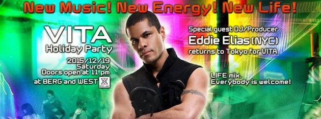 ジェンダー・セクシュアリティの枠を超えて生きる歓びを共有するパーティー「VITA」、10月のローンチパーティーの興奮も冷めやらぬ中、12月19日(土)、第二回開催決定!スペシャルゲストDJは、NYCから Eddie Elias(エディー・エライアス)!ダイバーシティーラウンジは、GRAMMY TOKYOがジャック!