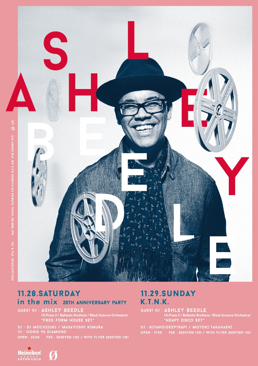 レコードマニアであり、FUNK、DISCO、HOUSEの愛好家ASHLEY BEEDLE(X-Press 2)をUKよりお迎えしての開催です。