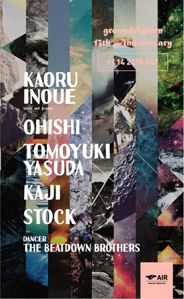 AIRグランドオープンの翌年からスタートし、永く美しい音の軌跡を描き続けてきたKAORU INOUEのレジデントパーティ“groundrhythm”。この偉大なミュージックジャーニーが、ついに13周年という記念日へたどり着く。祝祭でKAORU INOUEとともにプレイするのは、ハウスミュージックシーンの未来を切り拓くべくVISIONを舞台に開催されているパーティ“JMC”の5人のクルーたちだ。確かな実力を誇るネクストジェネレーションの頼もしいサポートを得て、KAORU INOUEのプレイはいつも以上に熱を帯びることだろう。13年前からここに通うオールドファンも、新しいファンも、フロアで感動の瞬間をともに分かちあってほしい。