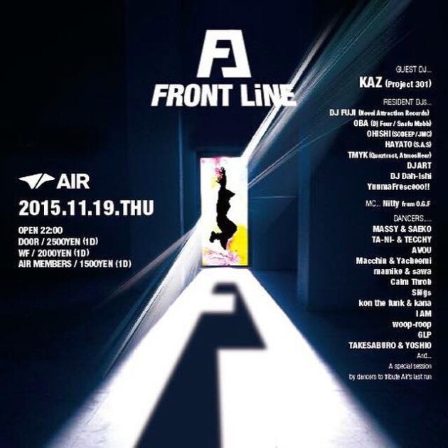レジデントDJ陣にはDJ FUJI、OHISHIらが名を連ね、ダンスショウケースにはFRONT LINEならではのダンスシーンを代表するダンサー達が出演。