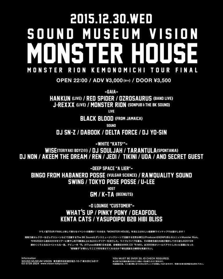 ケモノ道TOUR FINALと称して新たなイベントの幕開け!その名も「MONSTER HOUSE」年末にふさわしい超豪華ラインナップでお届けします!