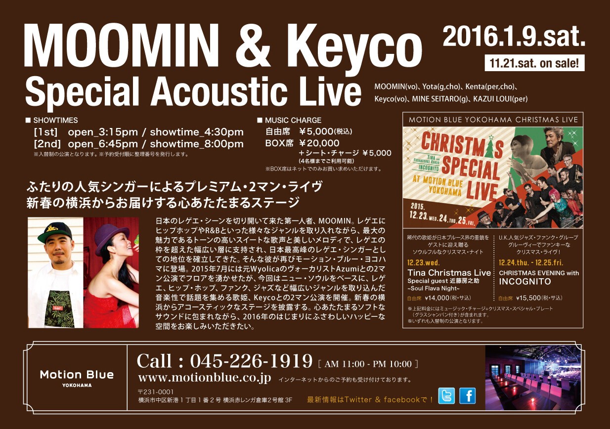 J-レゲエ・ソウルシーンで活躍する2人の人気シンガーによるプレミアム・2マン・ライブ。 新春の横浜からお届けする心あたたまるステージ。
