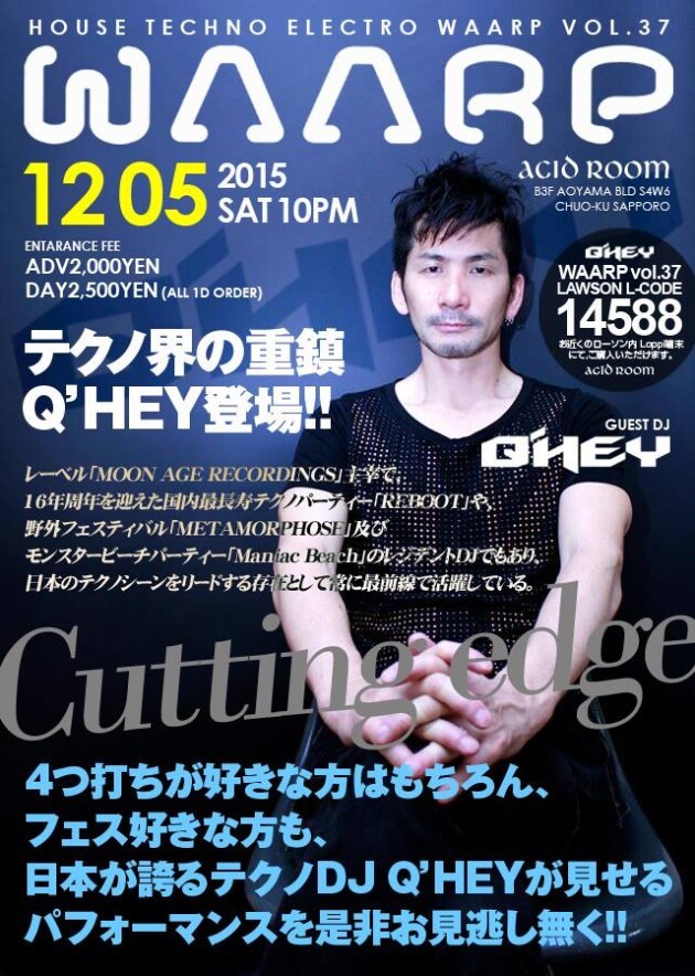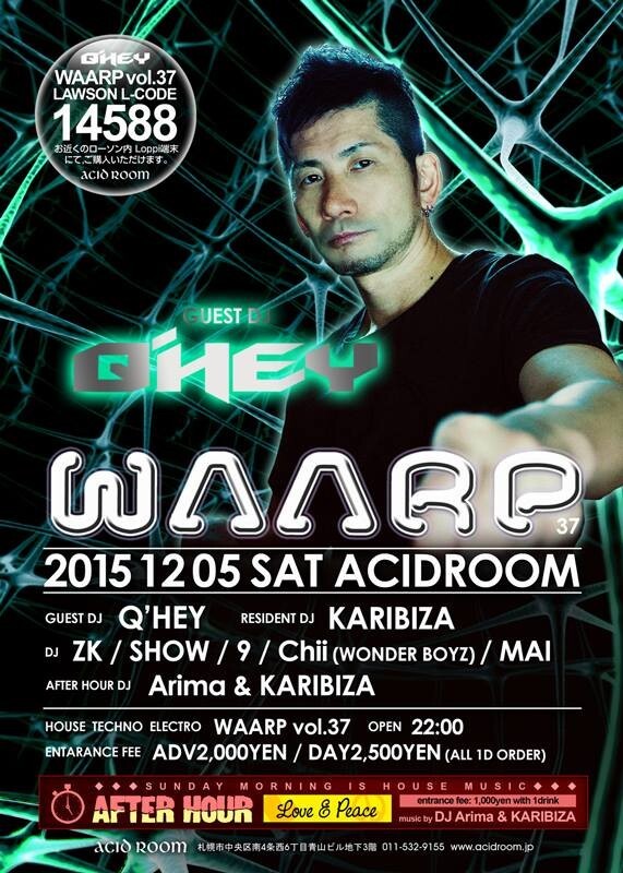 12月のWAARPは、テクノ界の重鎮的存在!DJ Q'HEYが一年ぶりにACIDROOMに登場!!!