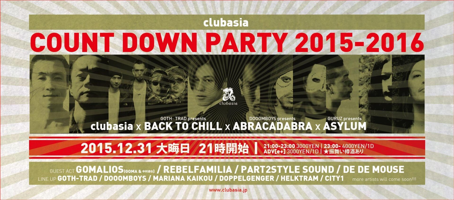 フロアには"BACK TO CHILL"でもお馴染みのサウンドシステムを増強。clubasiaならではのカウントダウンパーティーが実現します。