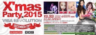 12月22日(火)祝前日 KG PROMOTIONによる、冬の企画! 一足先のクリスマスパーティーが開催決定!!! 今年のクリスマスパーティーは、 山梨甲府SONICにて大人気パーティー VIBA REVOLUTIONとコラボ!!!