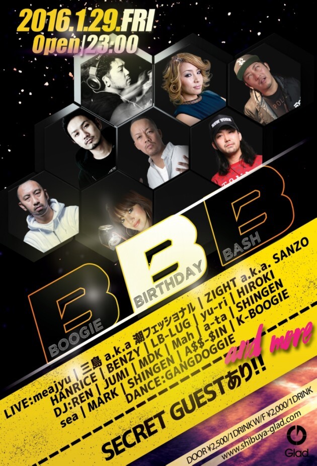 毎年恒例のGlad店長、K-BOOGIEのBIRTHDAY PARTY!!長年の縁ある錚々たるアーティストが集結!!お楽しみに!!!