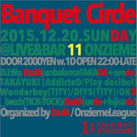 DJ:Nu DadA(unbalanceTAKADA+senda), TAKAYUKi(AddicteD/Play decibel), Wonderboy(TITY), DIY5(TITY), OKD, _becch(TICK-TOCK), DadA(ueda+fujisada)