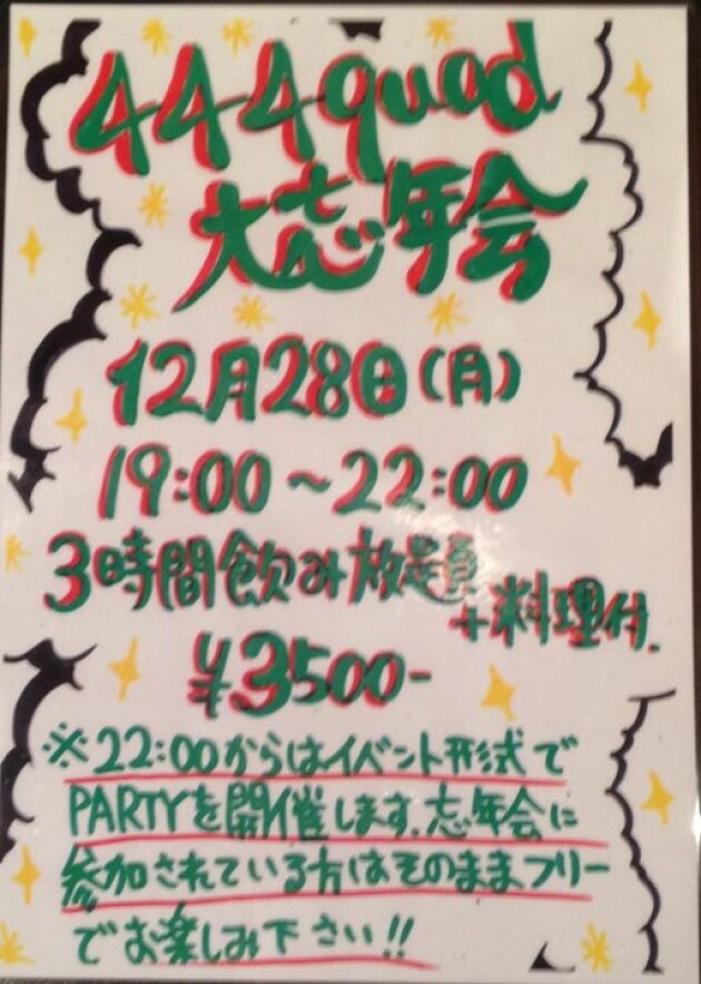 ※RUFUS 大忘年会は、前日27日に開催しますので、28日に来たくても来れない方は、是非、27日を楽しみしてください!