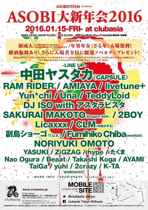 期待を裏切らないバラエティー豊かなラインナップを実現するパーティー集団ASOBISYSTEMがお贈りする「ASOBI大新年会2016」が開催決定!!!