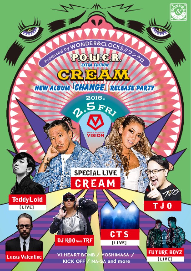 エキサイティングなパーティ配達人:CREAMが約2年ぶりとなるニューアルバム「CHANGE」を2016年2月3日に発売!そのリリースパーティと『P.O.W.E.R.』がコラボレーション!!