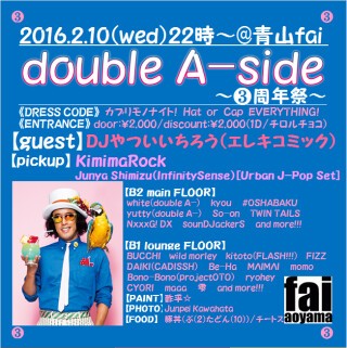 「ダブルエーサイド」とは両A面・・・対極しつつも両A面(表裏一体)である音楽のジャンル・スタイルを互いに認めあい、普段知らない人と繋がる楽しさ、自分自身の可能性を見つけるパーティーである。