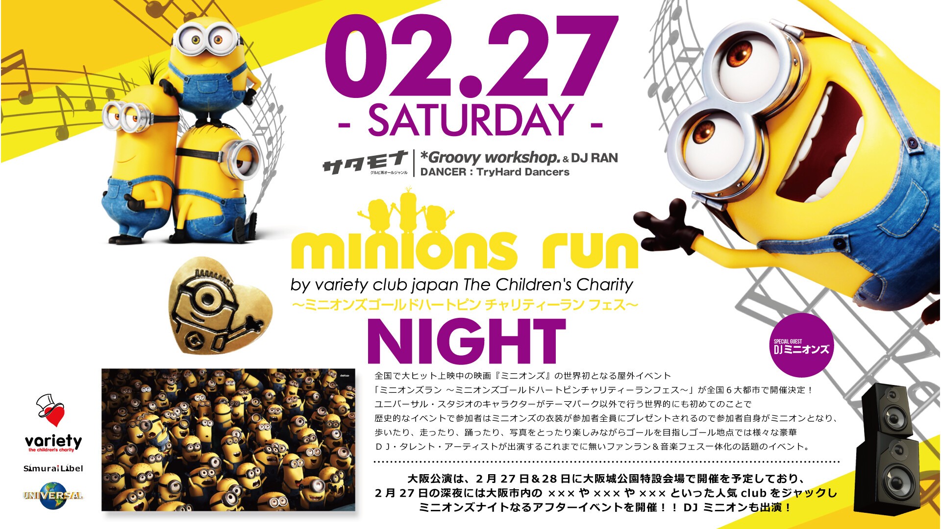 ≪ minions run NIGHT ~ミニオンズゴールドハートピン チャリティーラン フェス~ ≫02.27[SAT]