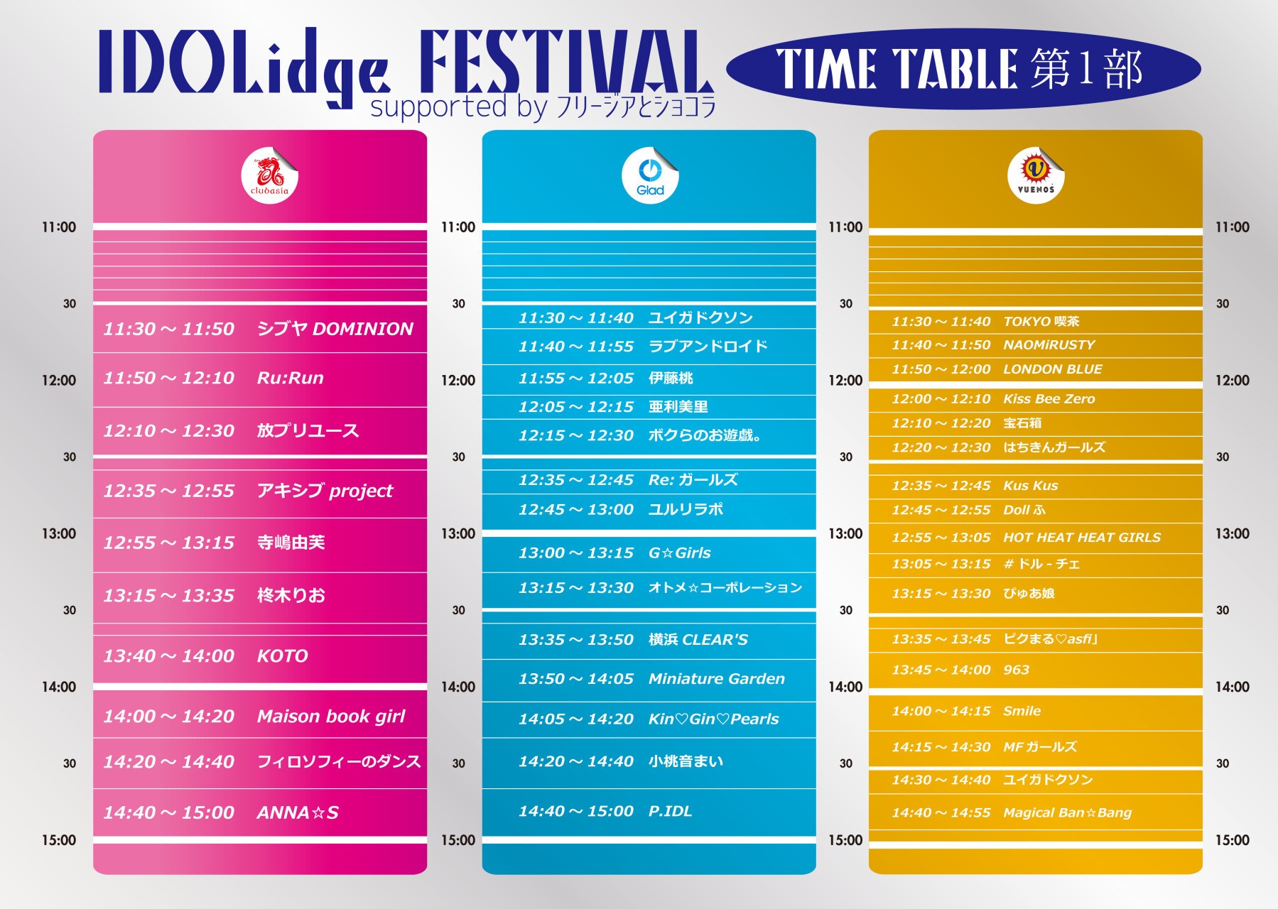 ■会場:club asia/VUENOS/Glad ※3会場連動