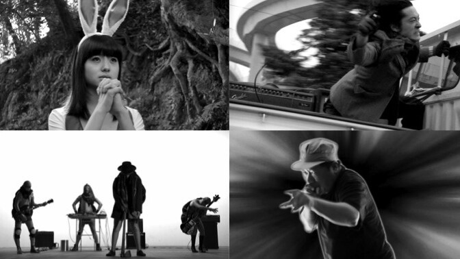 “2045 Carnival Folklore” by film director Naoki Kato, presented World Premier during Seattle International Film Festival 2015. Like a noise rock Brave New World with echoes of Alphaville, this gorgeous black and white vision of Japan after a nuclear disaster pits chaos against control and secret agents against an oppressive government agency. Featuring noise live performances with all musicians in the movie, welcoming UK-based Japanese four-piece band BO NINGEN!!!