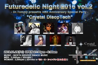 2016年1月最後のフライデーナイトは、毎月さまざまな店舗で好評開催中の、今年13周年を迎えるマンスリーパーティー『Futuredelic Night』とのコラボ!!