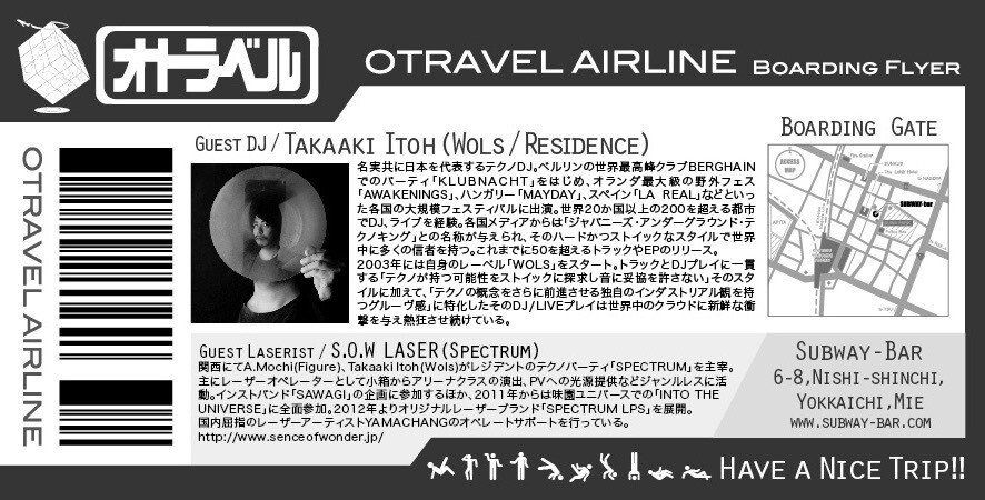 コンビナートシティ・四日市発テクノパーティ『オトラベル』 「ジャパニーズ・アンダーグラウンドキング」TAKAAKI ITOHが遂に登場!!!!!!!!