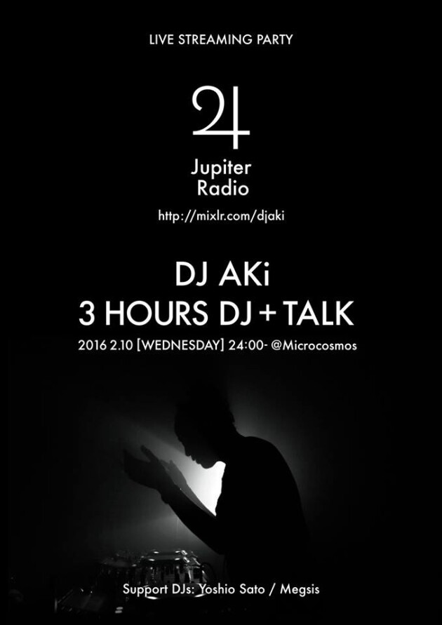 DJ AKiのパーソナルラジオ番組"Jupiter Radio”の公開生配信が2016年2月10日に 渋谷Microcosmosで行われることが決定!!
