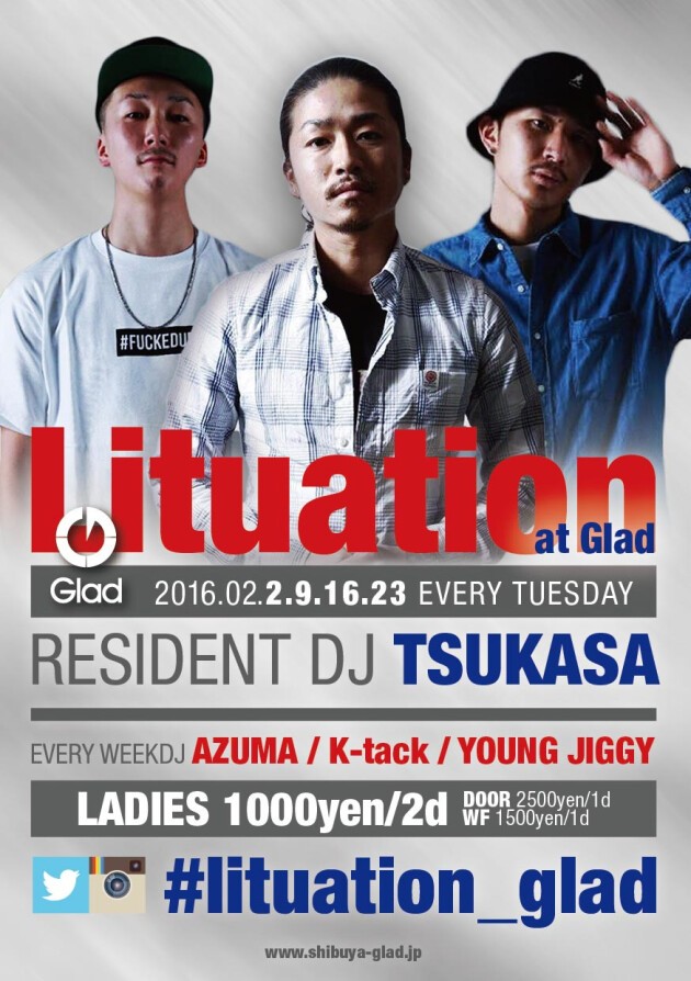 毎週火曜日は是非Lituation、渋谷、Gladお越しください!