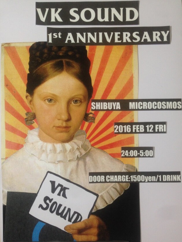 平成生まれ世代によるDJ集団 VK SOUND。2015年2月のバレンタインよりユニットと同名であるパーティー「VK SOUND」を渋谷で不定期に開催。ハウス、ヒップホップ、ロック、ポップスと、8人のDJそれぞれの個性が光るジャンルレスな選曲と、若手ならではのグルーヴ感を売りに活動中。ご機嫌さだけには定評のあるこの小さなパーティーは順調に集客を伸ばし、2016年2月に、1周年アニバーサリーパーティーをmicrocosmosにて開催。