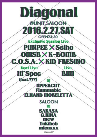 2015年2月27日、代官山UNITにて開催されたあの「Diagonal」が、ちょうど1年後、同日に帰ってくる。