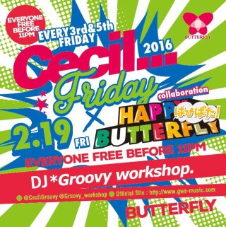 関西No.1オールジャンルDJ *Groovy workshop. がお届けするグルビ系オールジャンルパーティー『セシル・フライデー』!!