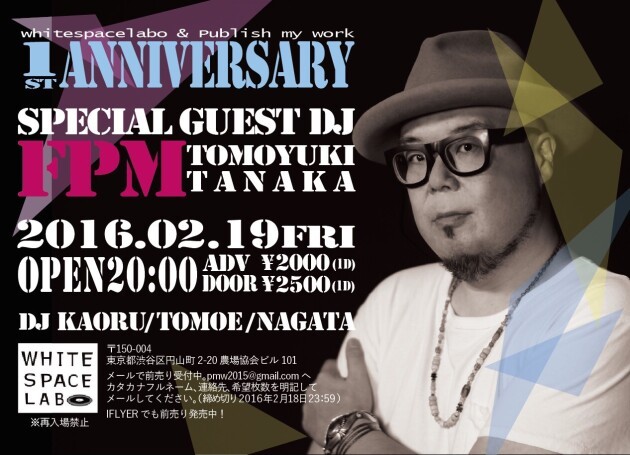 Tomoyuki Tanaka (FPM)がスペシャルゲストDJとして参加!終電で帰れて超間近でFPMのDJプレイを見られるまたとないチャンス!お見逃し無く!