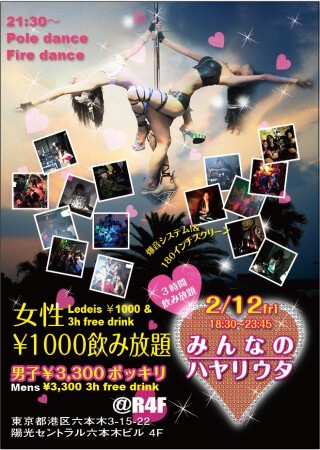 2/12fri参加表明で女性1000円飲み放題☆六本木ハヤリウタ☆