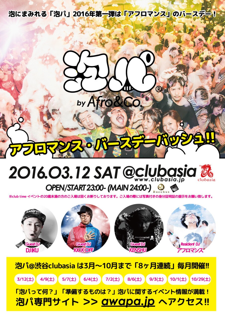 ◎3月の泡パは主催アフロマンスのバースデーバッシュ!