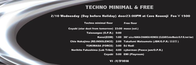 今年初のTECHNO MINIMAL & FREE!