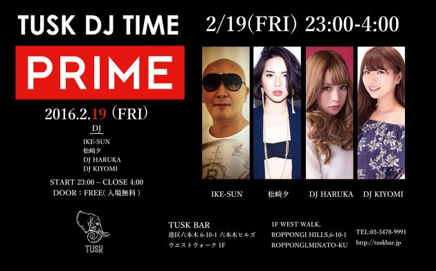 週末のTUSK DJ TIME、金曜日はTOP40,EDM,HIP HOPなどアッパーな選曲で盛り上げる。土曜日はDISCO、HIP HOPなど新旧を織り交ぜた選曲で、リラックス空間を創造。もちろんエントランスやチャージなどは無料。それぞれ違った楽しみがあるTUSKの週末をお楽しみ下さい。