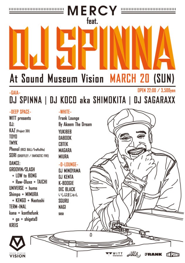 2016年から始まった”Mercy”は早くも3回目の開催となる。音楽とカルチャーをフュージョン融合させるこのパーティに今回出演するのはDJ SPINNA。ヒップホップ、ハウス、R&B、ジャズ、ブロークン・ビーツ、ダウンビート…と常にフリースタイルな音楽表現に挑み続けている彼ほどこのパーティのコンセプトに合うDJはいないのではないだろうか!?3度目にして、最高潮の盛り上がりを魅せるであろう”Mercy”に期待したい。