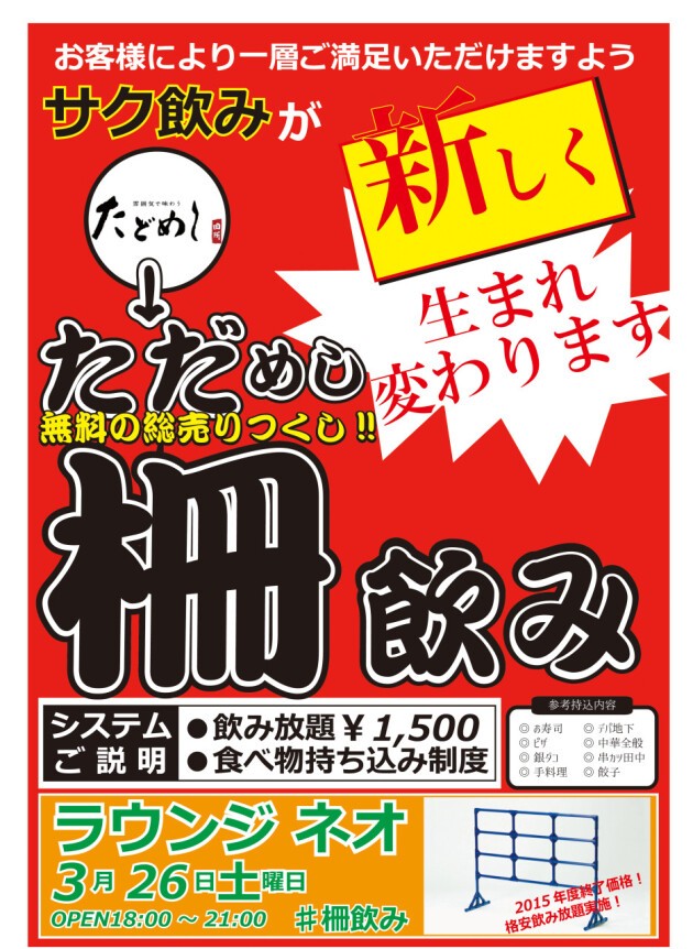 ◎3時間飲み放題¥1,500