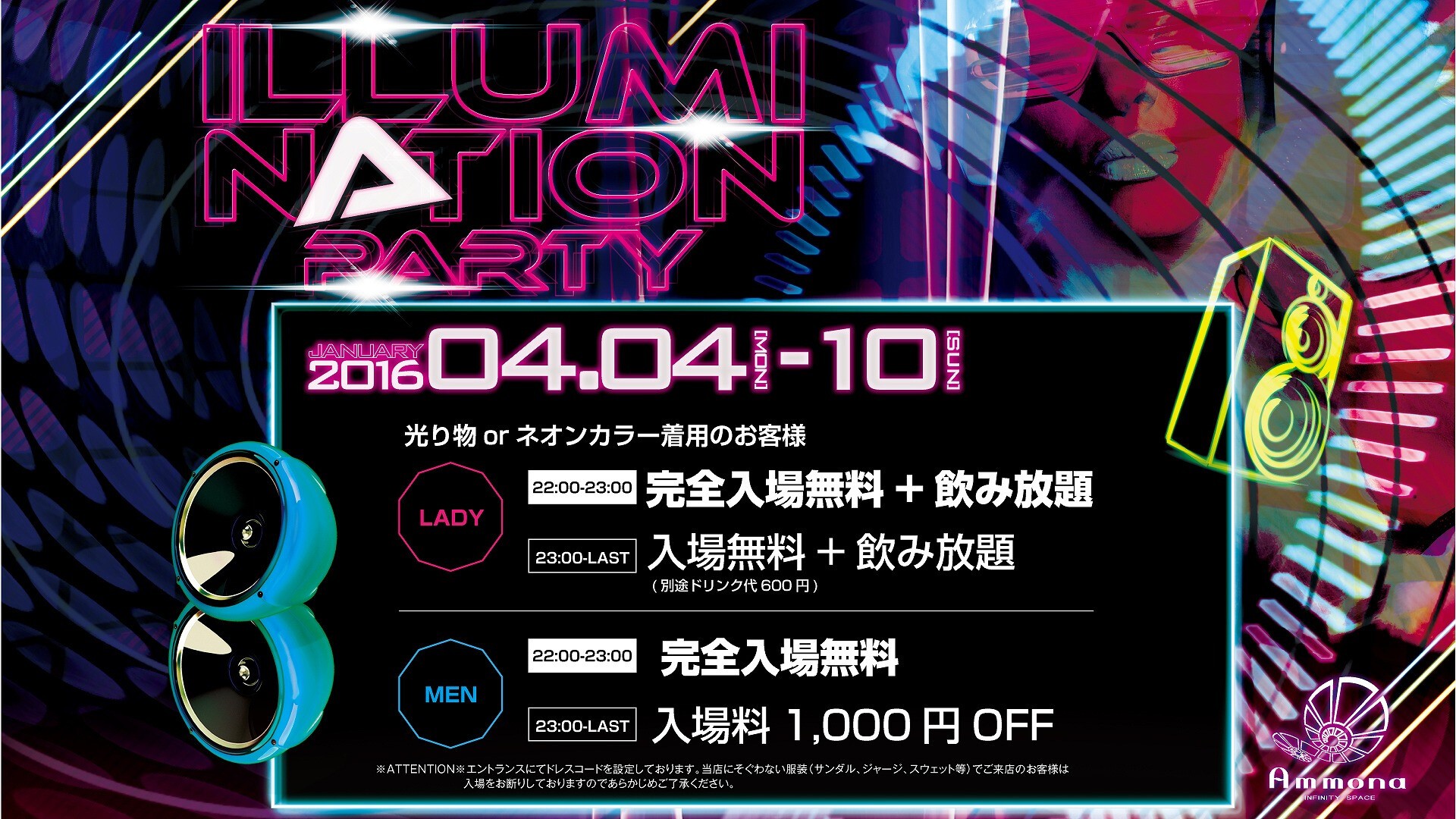 光り物 or ネオンカラー着用のお客様に下記特典!