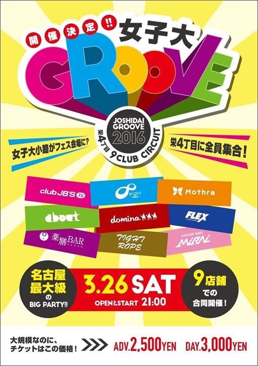 そんなDJが集まって『女子大GROOVE』が第3回目の開催となります!