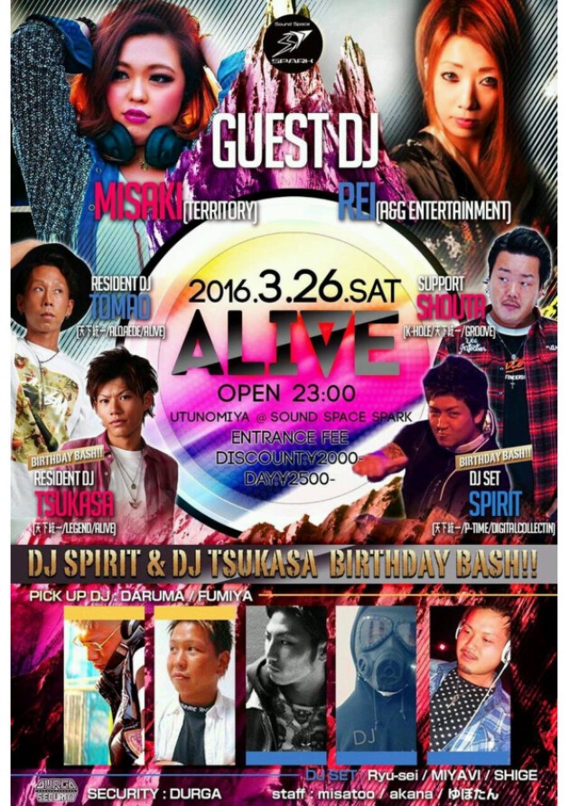 またこの日は【DJ SPIRIT&TSUKASA】のBIRTHDAYもやりますのでお祝いと協力よろしくお願いします!!