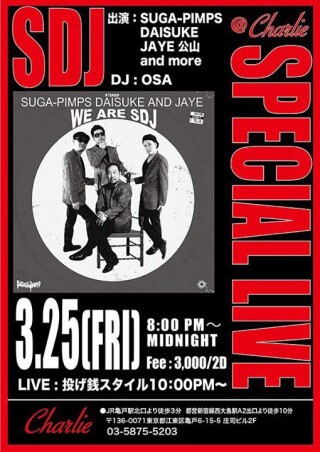 SDJ ついにCharlieに登場!! Suga-Pimps(Funky-T・Jun-Bay) Daisuke Jaye公山 4人からなる素晴らしいユニット♪♪ Liveは大人気!チケットは どこもSold Outです!