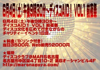 6月4日(土)午後9時30分~ディスコAID! VOL1 前夜祭
