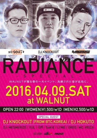 4月9日(土)はWALNUT 春の大祭として開催する『RADIANCE SPECIAL』!!!!