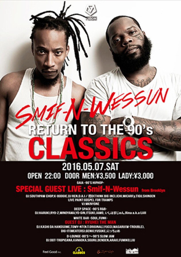 またしてもCLASSICSに素晴らしいアーティストが来日する。95年の1stアルバム"Dah Shinin"リリース以降、現在までコンスタントに作品をリリースし、HIP HOPシーンで確固たる地位を築いているテック(Tek)とスティール(Steel)の2MCユニット"Smif-n-Wessun"が出演する。大ヒットシングルの"Wrekonize"に代表される彼ら独特のフロウが、今でも聞き入ってしまう魅力がある。今回の彼らのライブも注目したい。