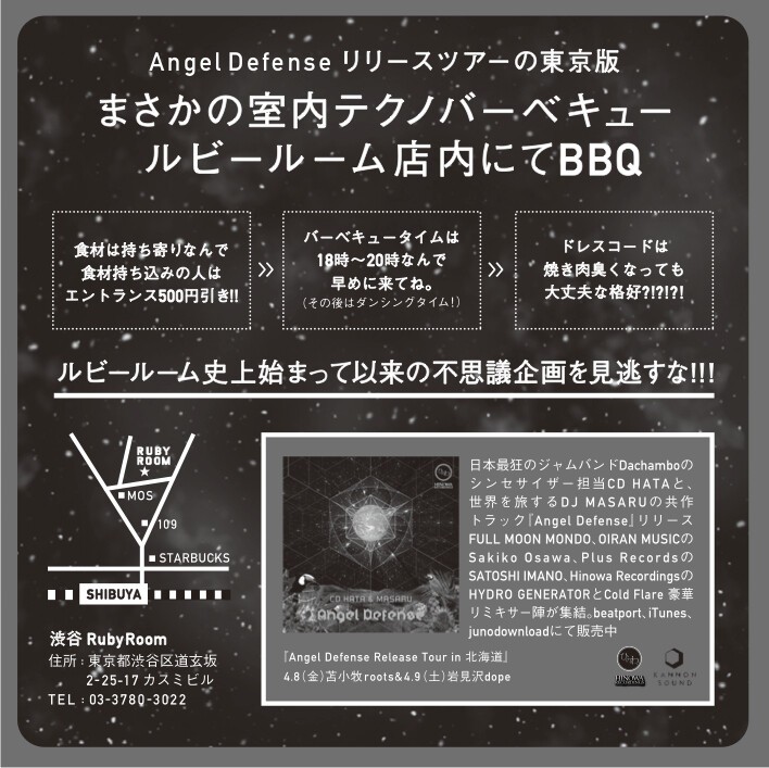 Angel Defense リリースツアーの東京版は、春のハチャメチャ企画、まさかの室内テクノバーベキュー