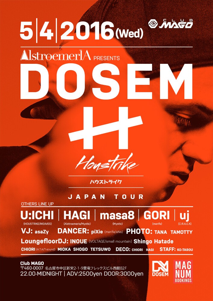 Guest DJには1回目と同じく、2016自身のレーベル「HOUSTRIKE 」をスタートさせた「DOSEM」が再び名古屋"Club MAGO"に登場!!!