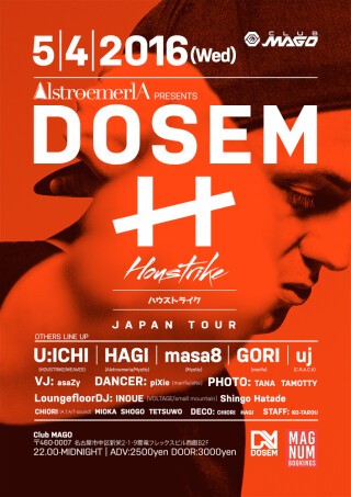 2016年、「DOSEM」は自身の音楽性の本質を‘より自由’に体現すべく、レーベル「HOUSTRIKE」をスタート。ここ日本では彼のスペシャルな日本への思いから「HOUSTRIKE」を彼自身がプレゼンテーションする為のプレミアム公演、JAPAN TOURの開催が決定した。