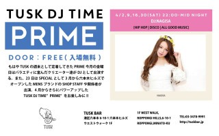 もはやTUSKの週末として定着してきたPRIME。 今月は金曜日はバラエティに富んだクリエーター達がDJとして出演する。 4月からさらにパワーアップしたTUSK DJ TIME”PRIME”をお楽しみに!!