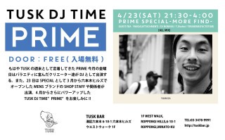 この日のTUSKはヒルズ内に出来たアパレル店舗のSTAFFやブランド関係者がDJをするSPECIAL!!いつもとは一味違うPRIMEをお楽しみに !!
