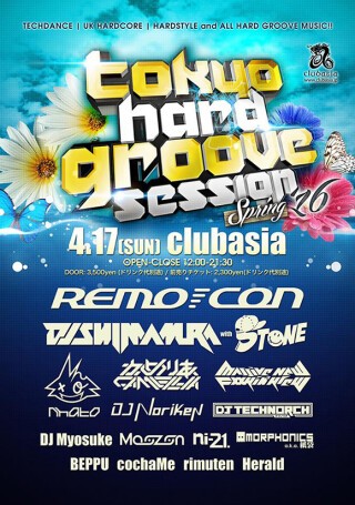 ラインナップはTOKYO HARD GROOVE SESSIONには欠かせない存在でありながらヘッドライナーに君臨し続ける 「REMO-CON」,「DJ SHIMAMURA」を筆頭に超豪華アーティストの夢の共演がこの日実現します。 1日でこの全てを体感できるのはTOKYO HARD GROOVE SESSIONだけ! 4月17日は間違いなく渋谷clubasiaに集合!!