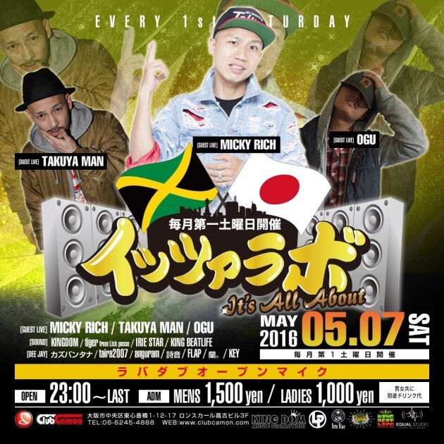 【イッツァラボ 〜It's all about〜】5/7(土)☆毎月第1土曜開催『イッツァラボ 〜It's all about〜』☆☆GUEST LIVEにMICKY RICH、TAKUYA MAN、OGUが登場★★レゲエアーティスト多数出演☆☆RUB-A-DUB OPEN MIC★★