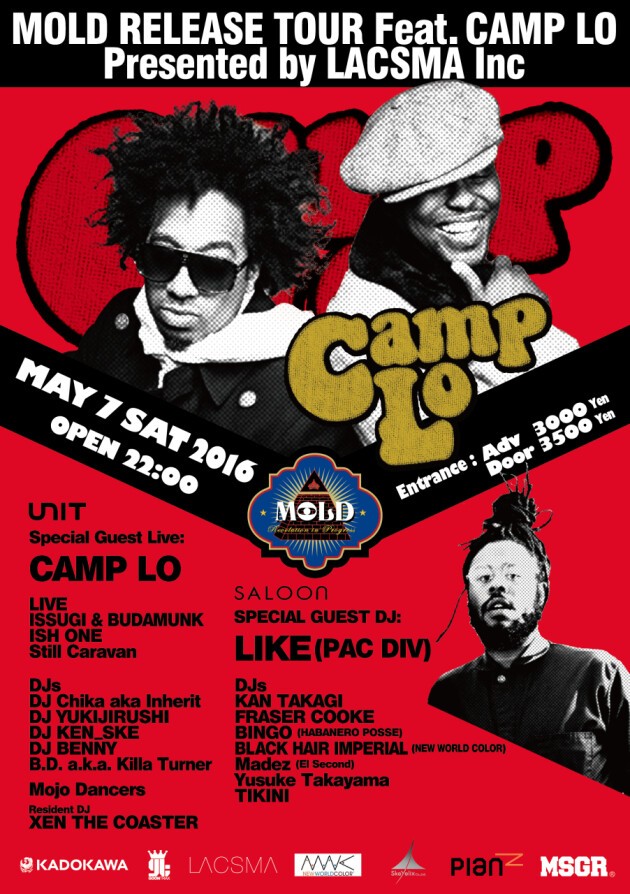 人気HIPHOPイベント”MOLD”が豪華コンピをリリース!90s HIP HOP LEGEND”CAMP LO”、 Kendrick Lamarプロデューサー “LIKE(PAC DIV)”を来日させたMOLD Release tourがGW最終日5/7(sat)代官山UNITで開催!